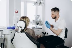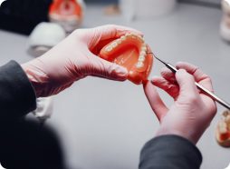 Врач в кресле проводит финальную примерку для проверки прилегания и прикуса. При необходимости проводит коррекцию – подшлифовывает области, которые могут натирать слизистую. Инструктирует пациента о правилах ношения, гигиены и адаптации к протезу.