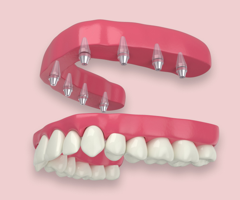 При восстановлении всех зубов по протоколам All-on-X используется хирургический шаблон, созданный на основе 3D-модели челюстей. Шаблон направляет действия хирурга, гарантируя установку имплантатов точно в запланированном месте, с нужным углом и глубиной.