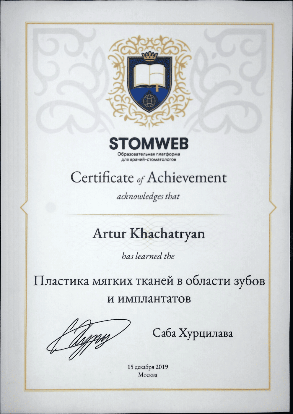 Хачатрян Артур Мамиконович - Заведующий хирургическим отделением, ведущий хирург-имплантолог
